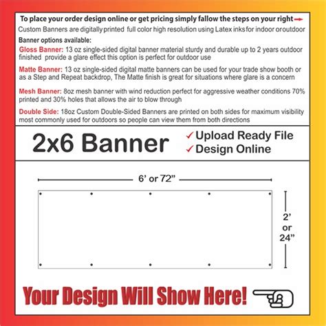 Download a vinyl banner template, design your artwork, upload. Web order your 6x2 banner from 1daybanner.com. Our 6ft x 2ft banners come in a variety of vinyls suitable for most indoor and outdoor uses. Take note of the bleed and trim lines. Promote your sale, announce an event, sporting events, sponsor banners, birthday & graduation. Web 6’x2’ banner options and specs. Same day pickup at 7,500+ locations >. Design stunning banners for all of your brand, business, or personal. Web check out our 2x6 banner template selection for the very best in unique or custom, handmade pieces from our paper & party. Design online, upload your design or we'll design your 6 feet x 2 feet. Web 2' x 6' vinyl banner.