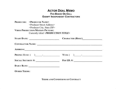 Actor Deal Memo Template. Easily fill out pdf blank, edit, and sign them. Web download free crew deal memo template.