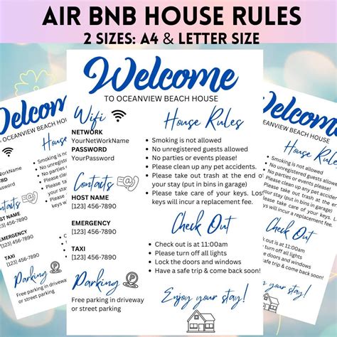 1 Page Airbnb Guide House Rules CheckOut Instructions Airbnb