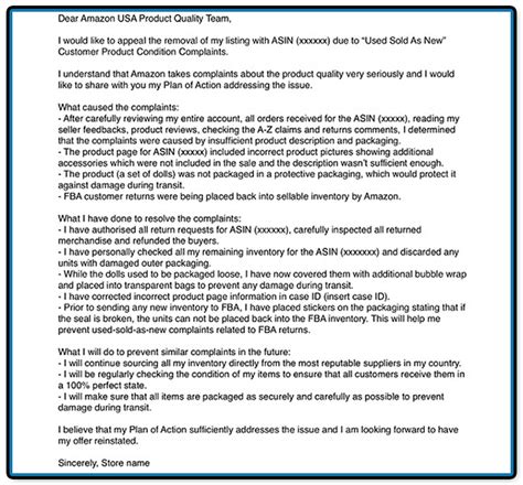 Amazon appeal letter