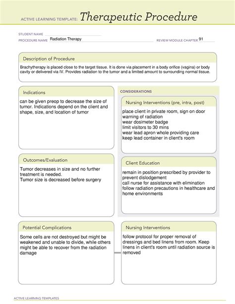 Brachytherapy Ati Template. Web brachytherapy is a type of radiation therapy used to treat cancer. Most brachytherapy is put in place through a catheter, which is a small,.