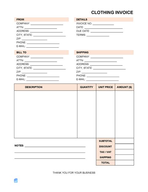 Clothing (Garments) Invoice Template Sample GeneEvaroJr