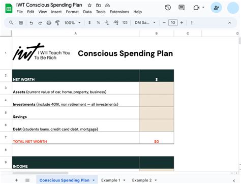 Conscientious Spending Plan Template. Use this worksheet to see how much money you spend this month. A document used to determine the cash flow of an individual or family.