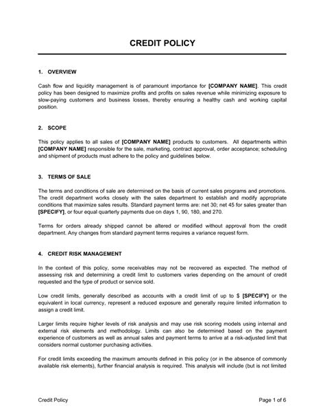 Credit Policy Template. Web 17+ free credit policy templates. Web mission the credit department defines the requirements for establishing trade credit for new customers and maintaining credit lines and limits for active accounts and.