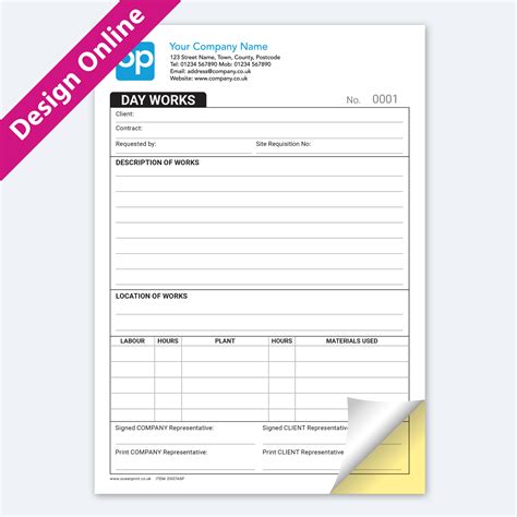 FREE Day Works Form Templates Day Works Form £75 NCR Work Form