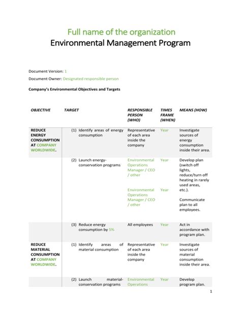 Environmental Program Template. Web this page takes you though the basic steps (plan, do, check, act) of building an environmental management. Web an environmental management plan (emp) is tool organizations use to set and achieve.