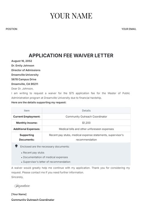 Web we have a variety of templates for you to use such as waiver letters, waiver forms and liability waivers, and other freehand ones. Follow these simple steps to get tuition fee waiver ready for submitting: Web fee waiver application form murrayschools.org details file format pdf size: City fees related to (a) the initial construction of the project and. 31 kb download fee waiver request. Web application to proceed in district court without prepaying fees or costs (long form) fee waiver application forms : You can do this at the same time you file your other. The kind of fee waiver that we are talking about here is just for the application fee charged by the law school. Web students must qualify for a college application fee waiver based on financial need. Web it only takes a few minutes. Fees/fines that are eligible for a waiver request are fees/fines for compliance issues, late fees, demand fees and lien.