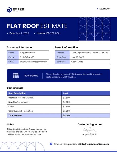 Flat Roof Estimate Template. Customize our free roofing estimate template with details like your company name and logo, client information, line items, final. Web skynova's estimate template lets you create detailed and polished roofing estimates.