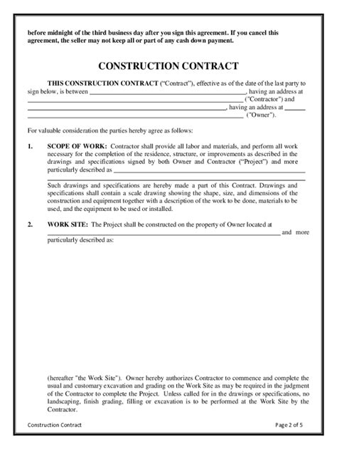 Free Construction Contract Template Sample PDF Word eForms