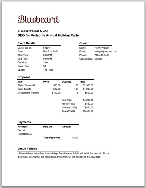 FREE Banquet Event Order (BEO) Template