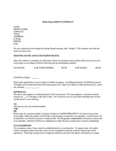 Hotel Group Contract Template. Used when the university is contracting with an external hotel for guest room blocks, conference rooms, or related services. Download it immediately after you buy it,.