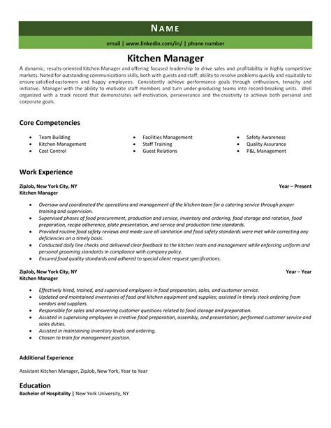 Kitchen Manager Resume