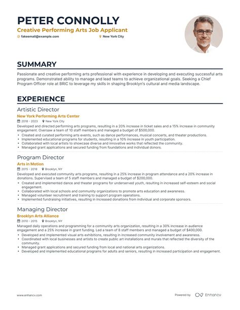 Professional Performing Arts Resume Template & Samples