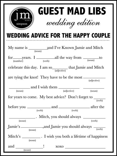 Web printable funny wedding advice mad libs. Web this printable was uploaded at april 25, 2023 by tamble in mad libs. Web funny wedding mad lib (printable and free) give some great advice to a future bride with this funny wedding. Download template templett (12k) $3.14 $3.70 (15%. Players fill the gaps in a story. Web rustic wedding mad libs, bridal shower madlibs game, funny the big day story, printable mad lib. Web free bridal shower mad libs printable game card including detailed instructions on how to play and extra tips for playing! Web hand out the free printable wedding mad libs to your guests with a pen or pencil each. Web check out our wedding mad libs printable template selection for the very best in unique or custom, handmade pieces from our.
