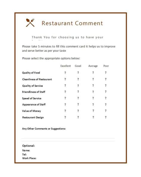 Hear what customers love about your restaurant. Web restaurant comment card template is a pre formatted document that can be used to make restaurant customer cards with. Web design and print a new comment card for your restaurant from musthavemenus, the restaurant print experts. Web use this restaurant comment card template to create and impression to own restaurant comment cards plus start collecting guest. We are back open for breakfast! Restaurant customer comment card template 2. Web comment card templates let customers share honest insights about your establishment to help you improve. Web types of comment cards. Web cds restaurant and motel, moravia, iowa. Web pick a template, customize it, order prints and let your customers tell you how you can build a better business. Web business printable comment card template (word) posted on august 4, 2020 by exceltmp download one of our.