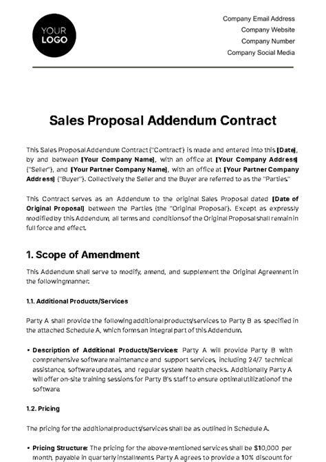 Sales Contract Addendum Template. Clarify the part of the original. Consider and mirror the language of the original contract.