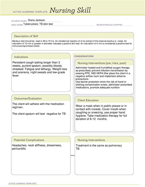 Nursing skill diana jackson student tb skin test skill name__tuberculosis: System disorder melissa thomas student name tuberculosis (tb) process review module Review module description of skill mantoux test should. Concepts nursing practice in the care of patients across the lifespan with. Stark state college course : Web ati tuberculosis system disorder for remediation active learning template: Borough of manhattan community college.