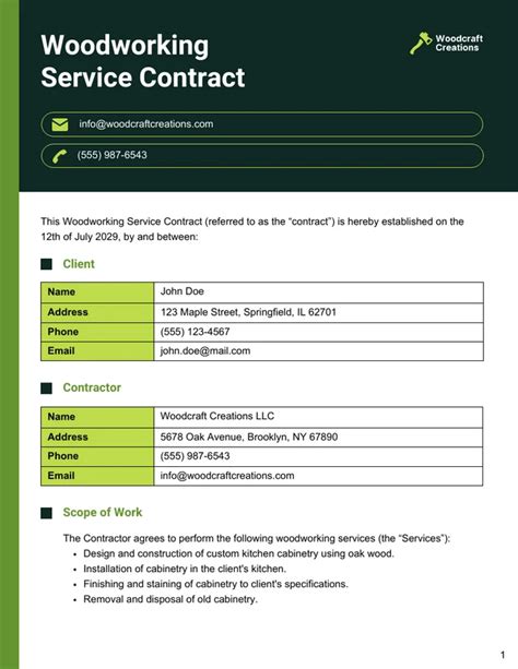 Woodworking Contract Template. Web the carpenter shall pay for all lumber, tools, equipment, machinery, labor and permits required by law in order to perform the. Web a woodworking contract has an agreement intermediate a woodworker and certain individual or a business.